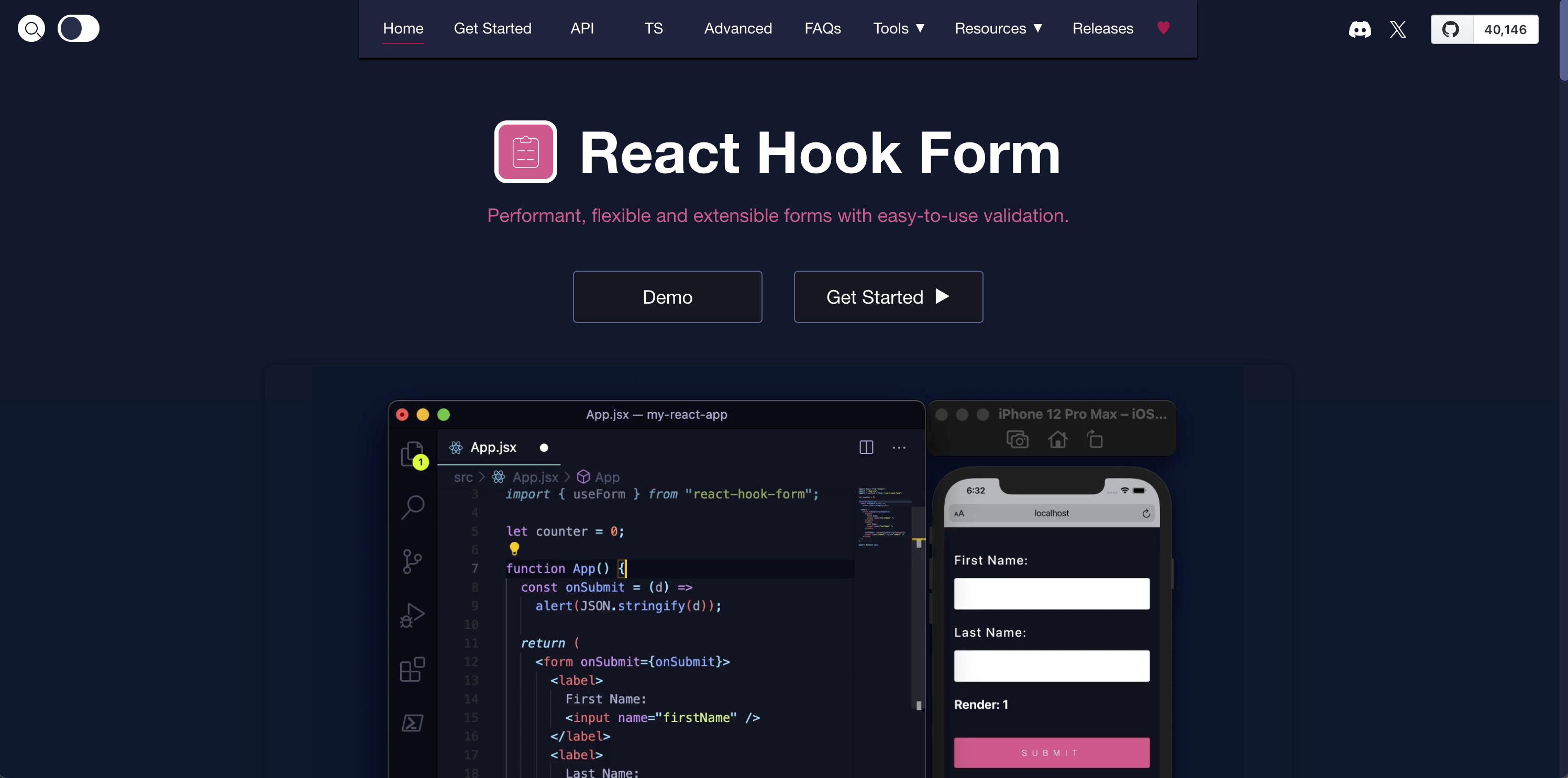 React Hook Form is a popular form management library that takes a functional approach to handling form state, validation, and submission. It offers a clean and concise API, making it a favorite among React developers.