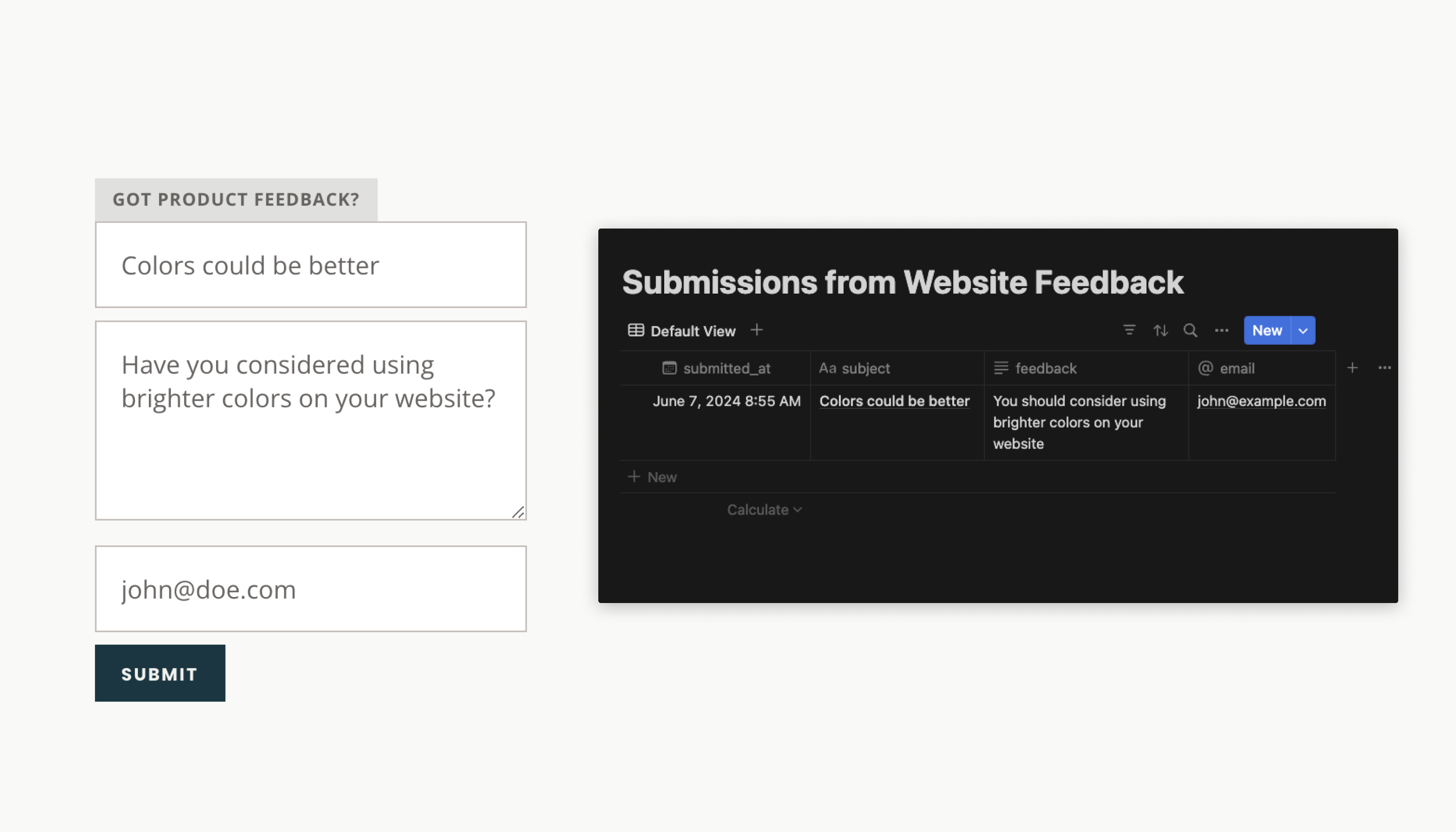 And that’s it! Try submitting the form to see the database get populated with a new record: